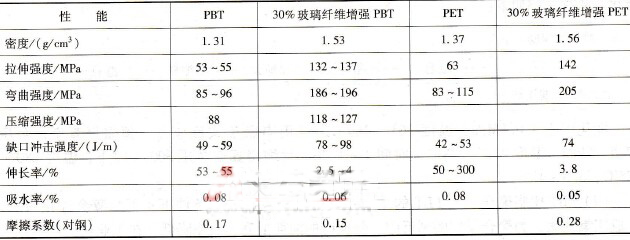 表3-21物理PBT和PET的機(jī)械性能