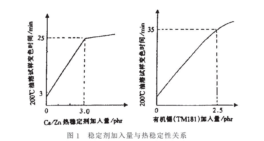 穩(wěn)定劑加入量與熱穩(wěn)定性的關(guān)系曲線圖如下: