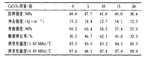 (4)隨著CaCO3用量的增加,PVC/CPVC合金的拉伸強(qiáng)度、彎曲強(qiáng)度 斷裂伸長(zhǎng)率總體上均呈先上升后下降的趨勢(shì)?;钚訡aCO3用量的變化對(duì)沖擊強(qiáng)度幾乎無影響。熱變形溫度在活性CaCO3用量為5~15份時(shí)變化不大,但當(dāng)活性CaCO3用量超過10份時(shí),熱變形溫度上升。